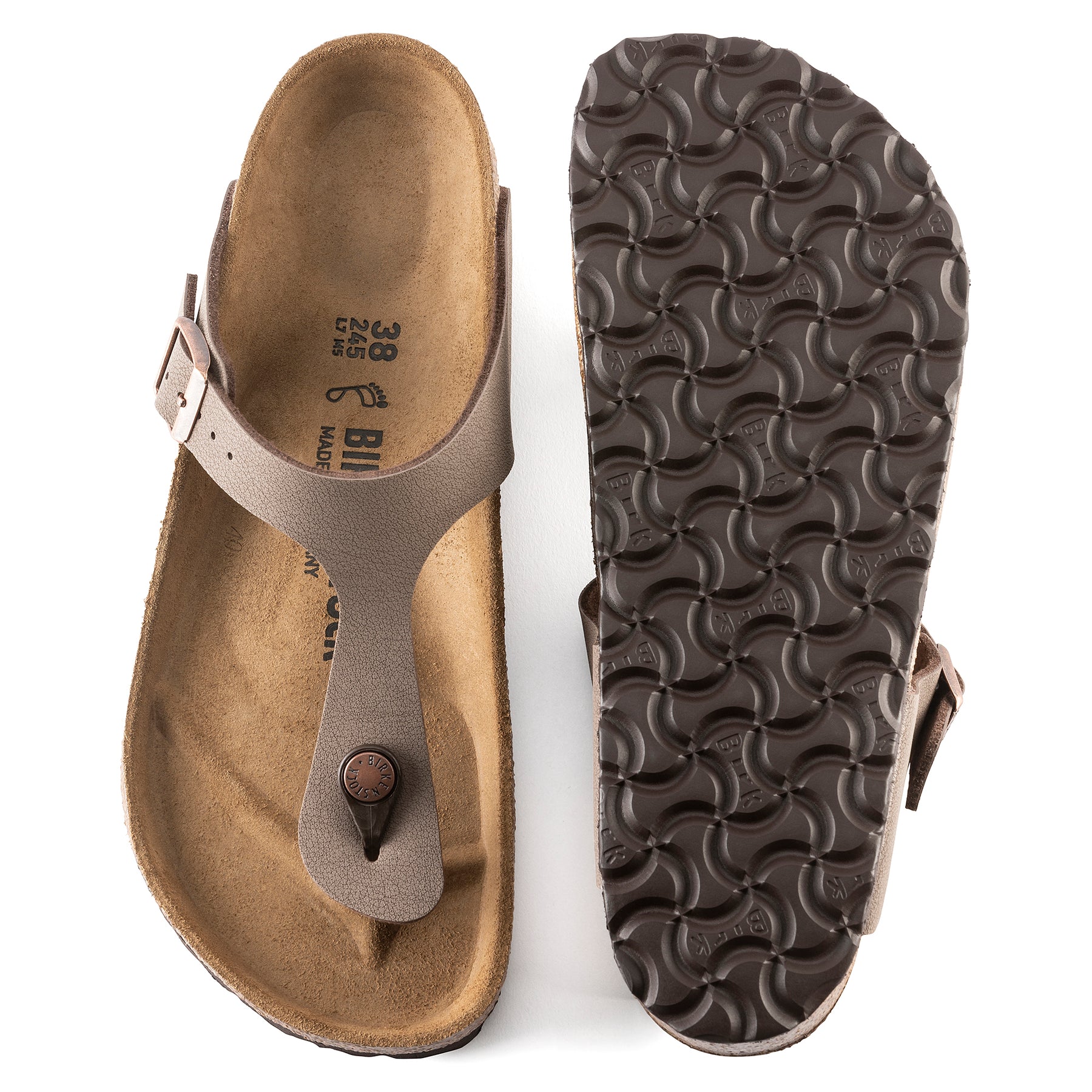 Il modello BIRKENSTOCK Gizeh è un vero classico dallo stile poliedrico. L’elegante sandalo a infradito coniuga l’appoggio ottimale al design minimalista alla moda. La tomaia è in materiale sintetico Birko-Flor® dermoaffine e resistente e presenta un raffinato effetto Nabuk. Grazie alla speciale lavorazione, la tomaia può essere facilmente scambiata per vera pella sia per colore che per texture.