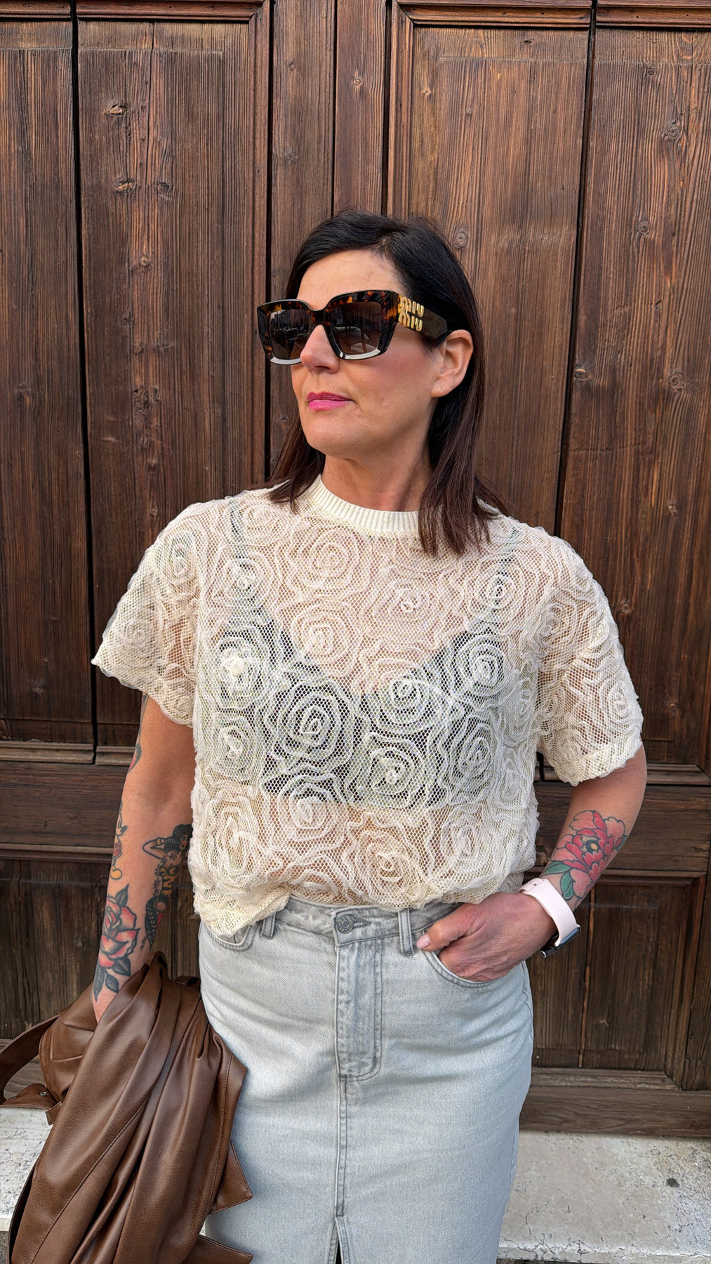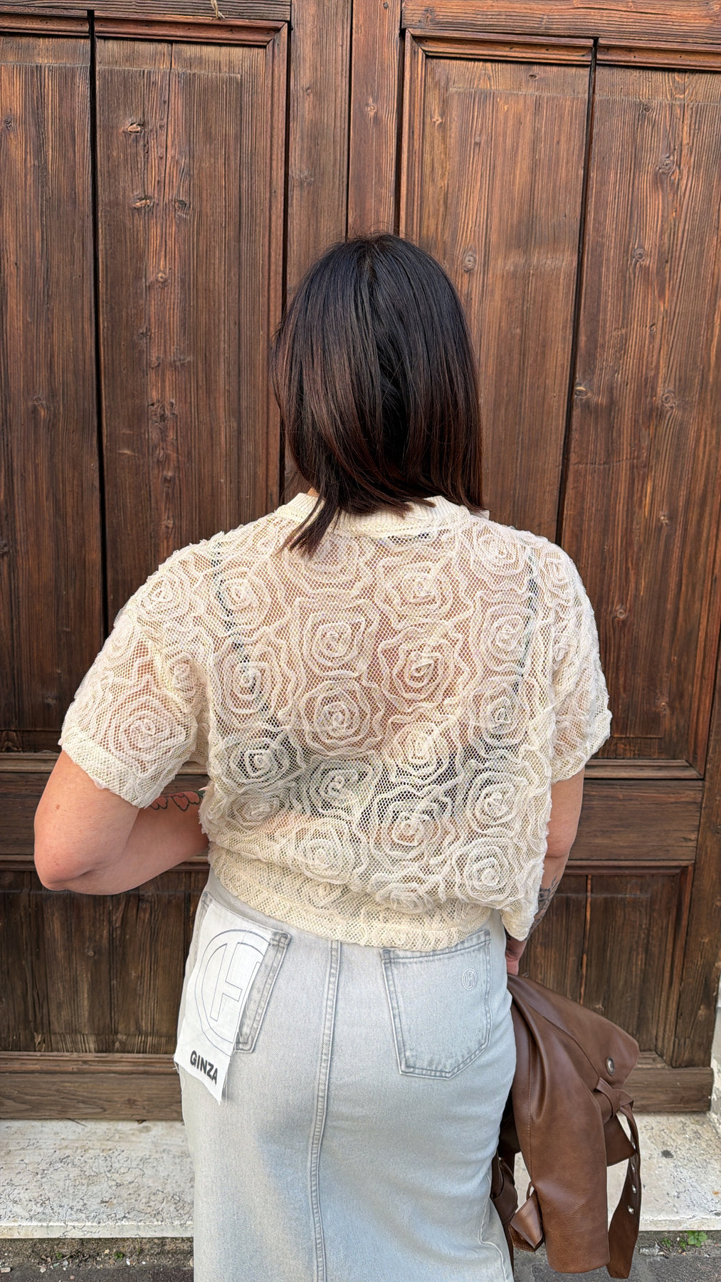 HAVEONE MAGLIA ROSE IN TULLE PANNA
