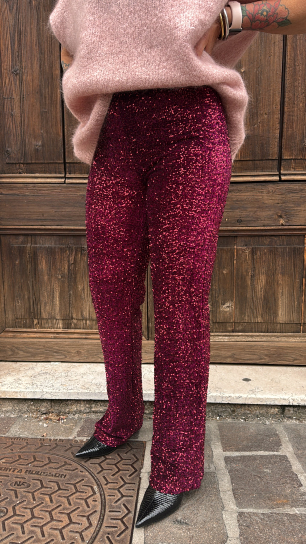 HAVEONE PANTALONE PAILLETTES BORDEAUX
