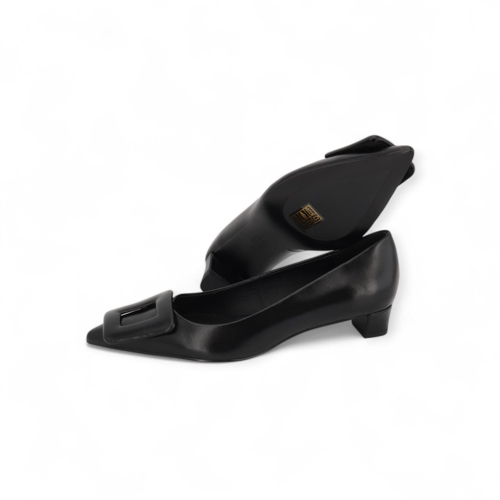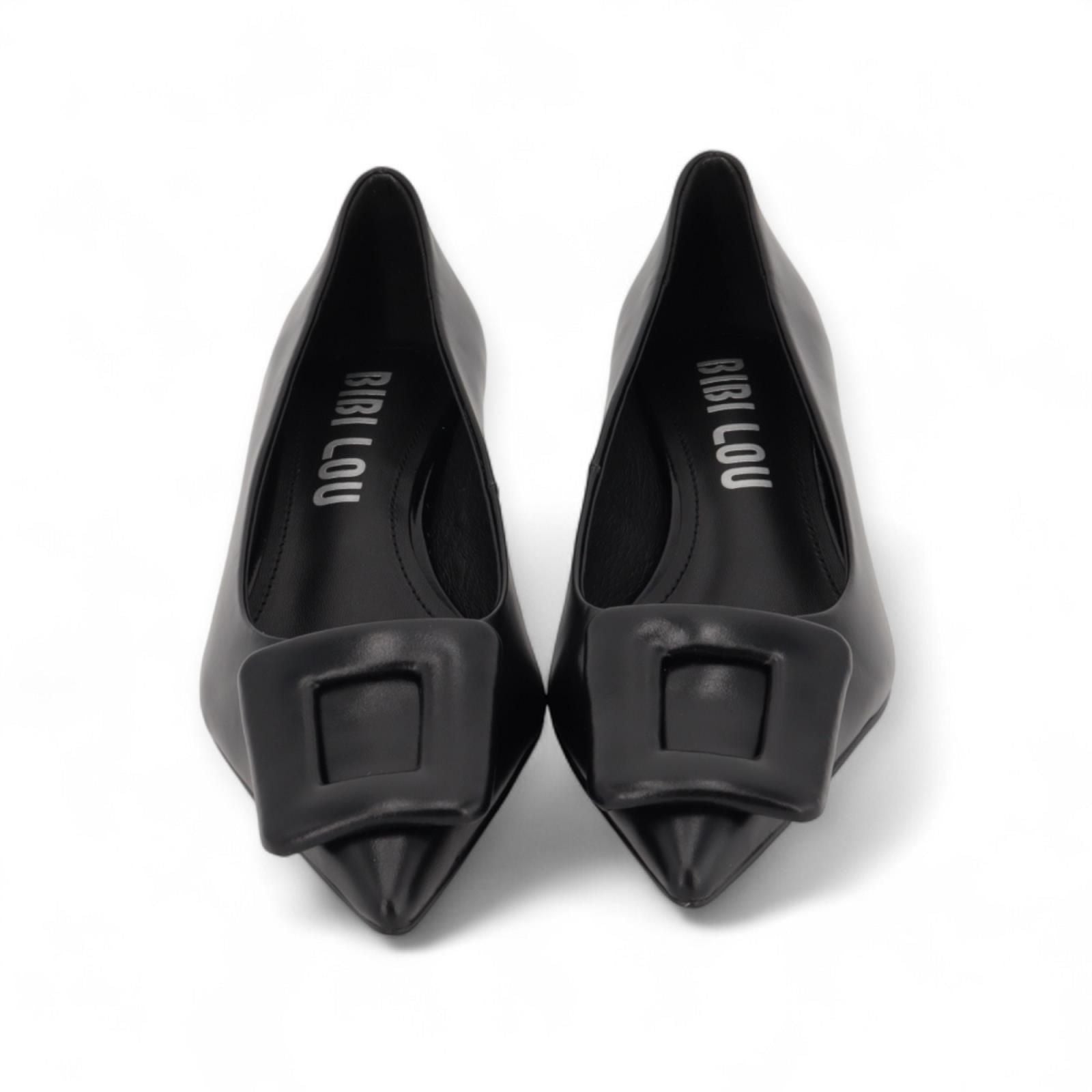 Décolleté Bibi Lou da donna. Questa pompa è in pelle nera. Ha un naso affilato con il tusso. È alto un piccolo tacco geometrico di 2-2,5 cm.