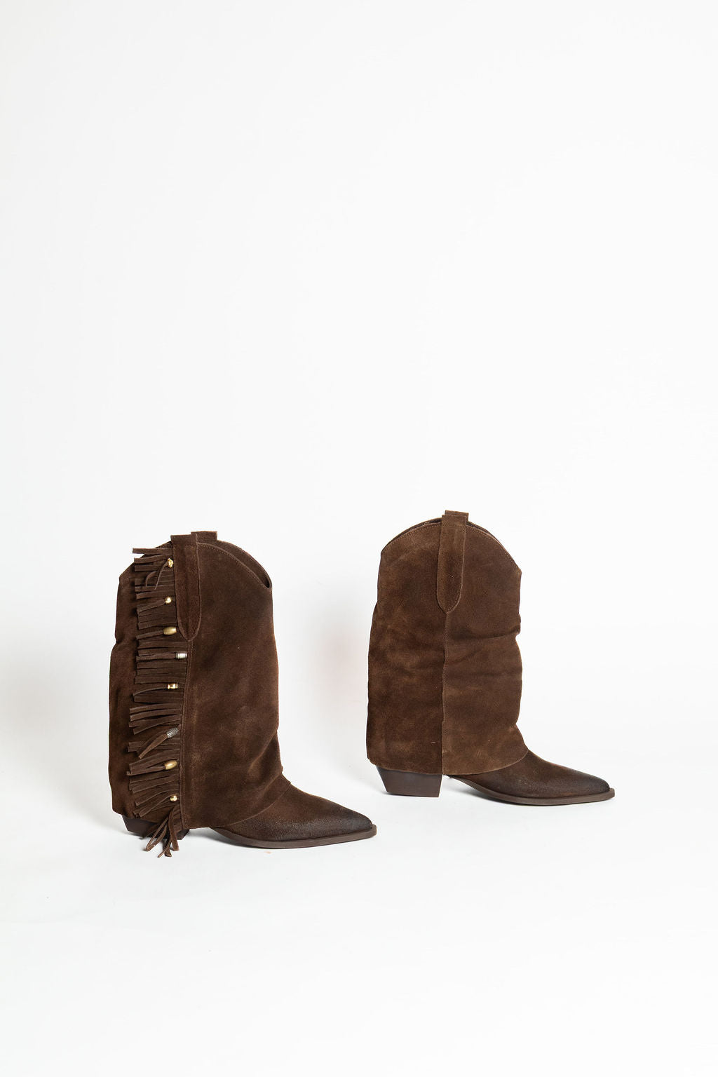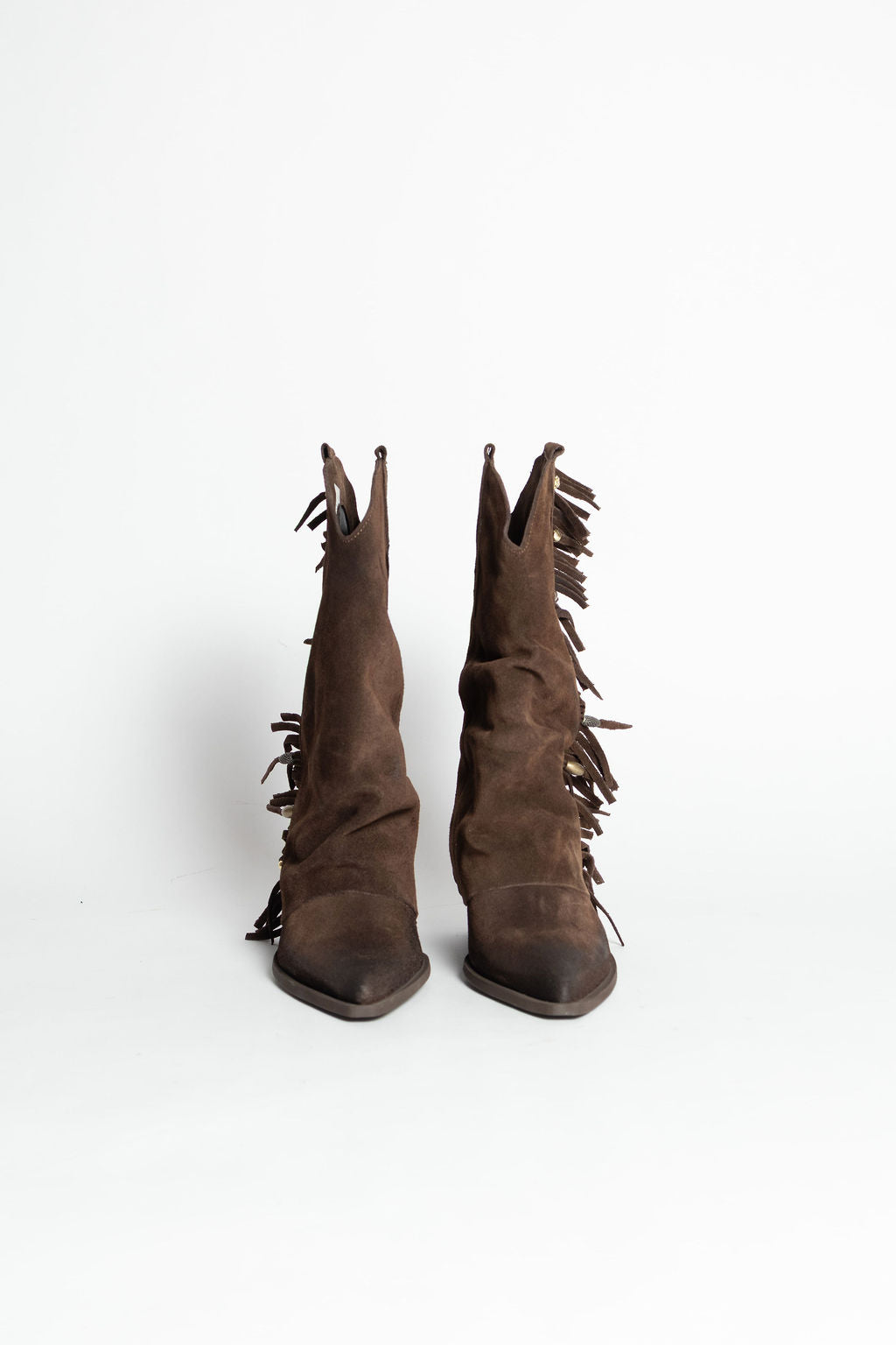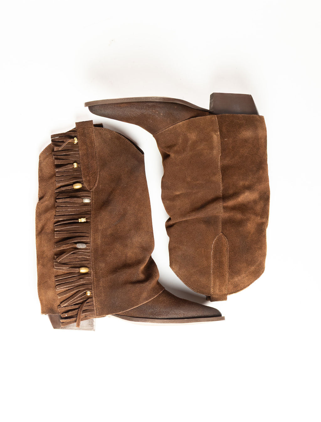 DIVINE FOLLIE TEXANI CAMOSCIO FRANGE TESTA DI MORO