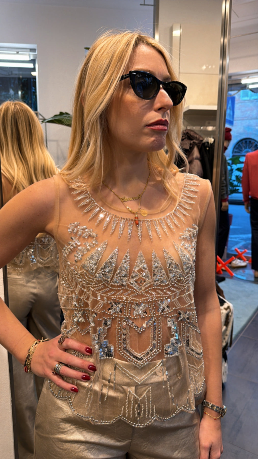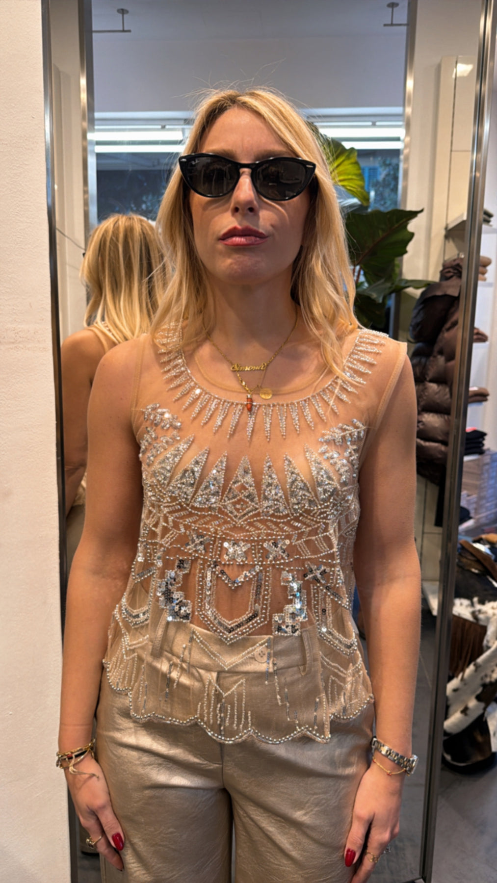 TENSIONE IN TOP PAILLETTES SILVER
