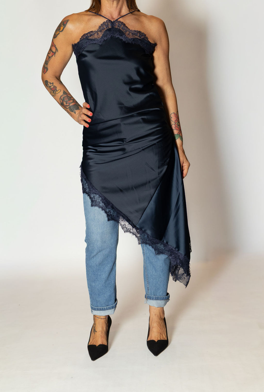 ABITO LUNGO IN VISCOSA E PIZZO BLU