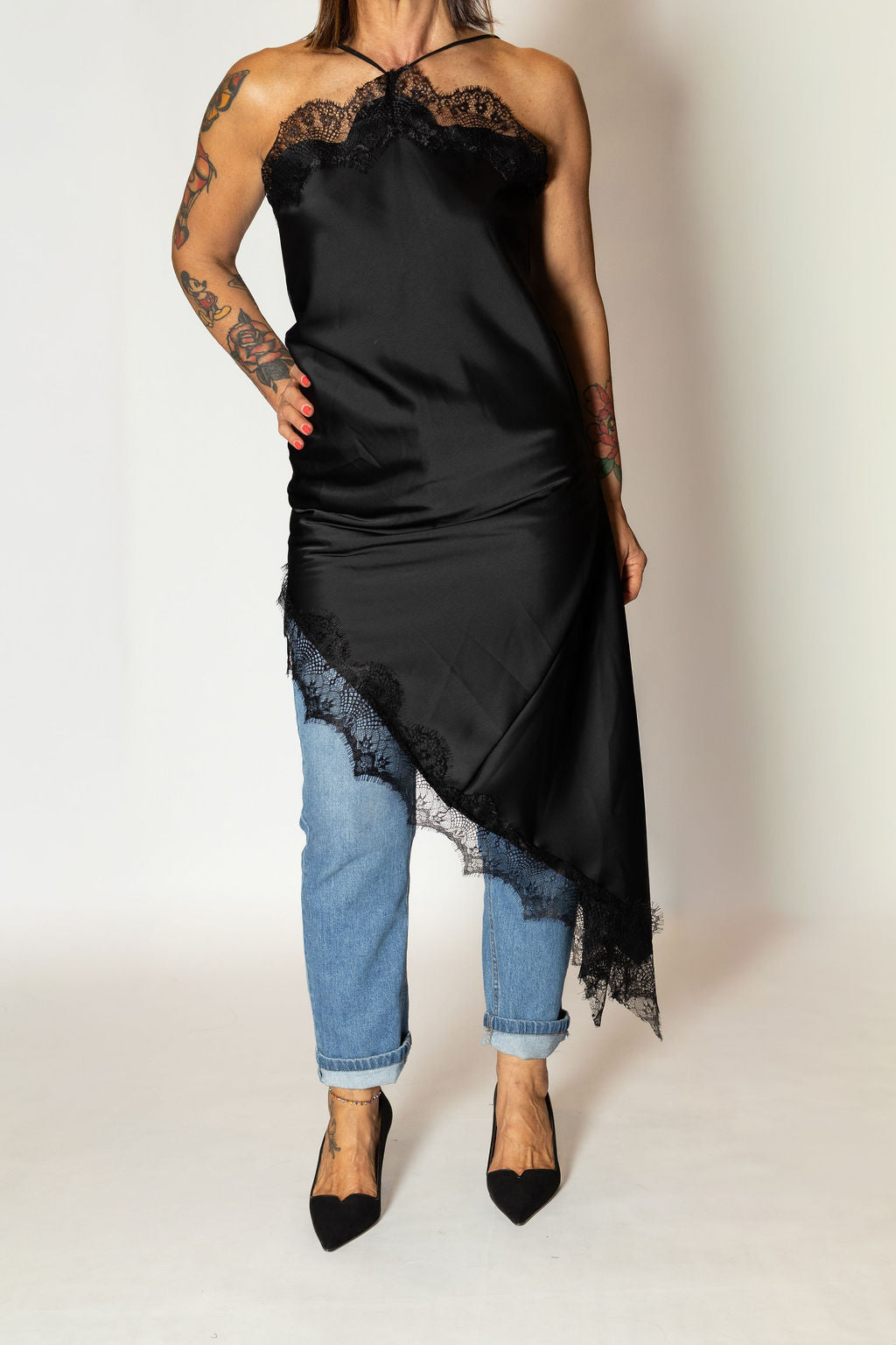 ABITO LUNGO IN VISCOSA E PIZZO NERO